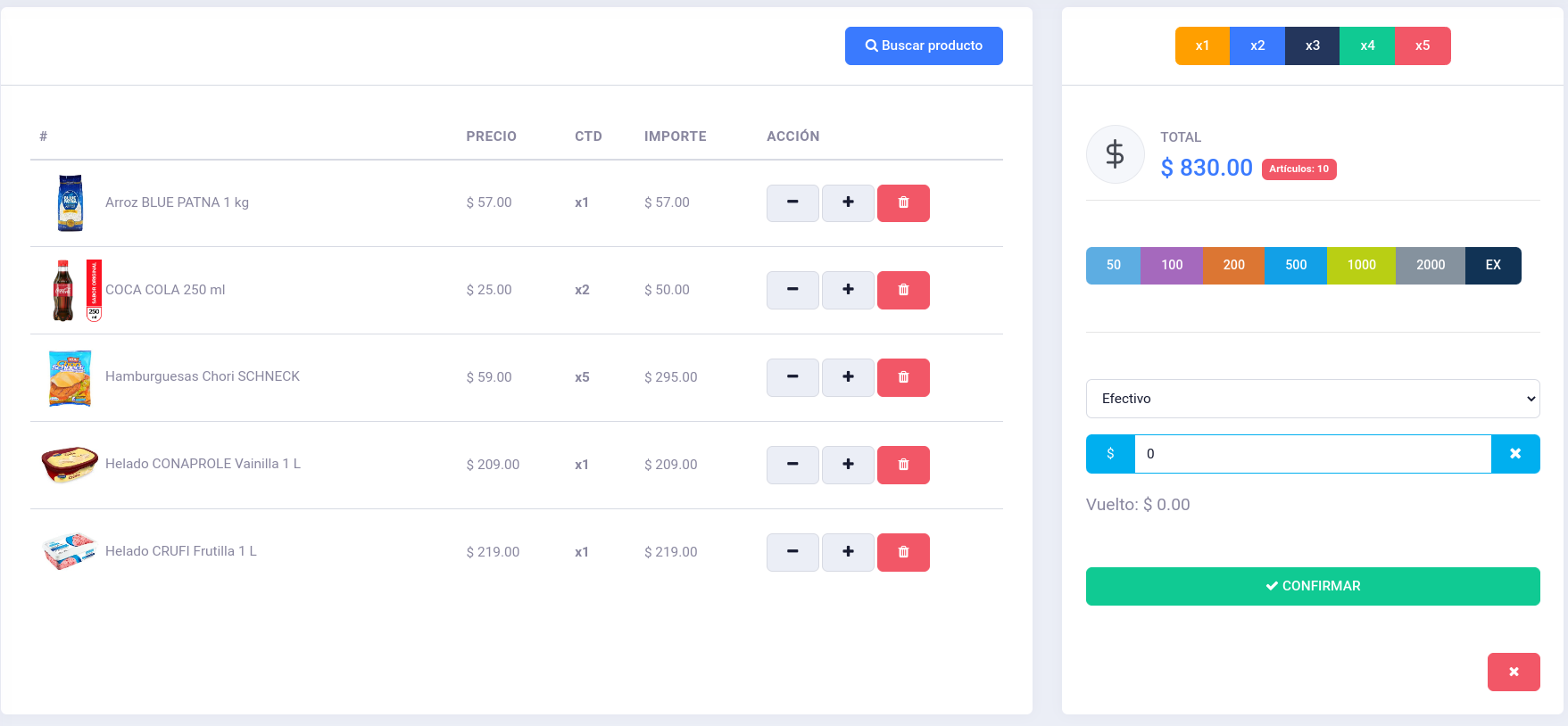 Interfaz sencilla y facil de usar para el ingreso de las ventas.