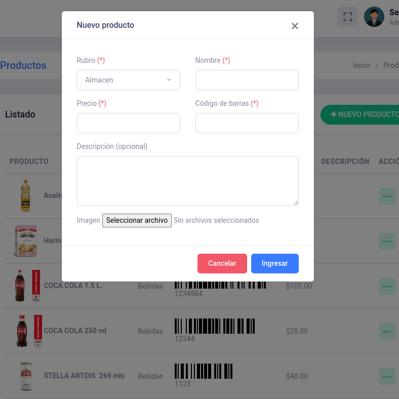 Ingreso de productos con imagen al sistema. Tambien podras gestionar los rubros.