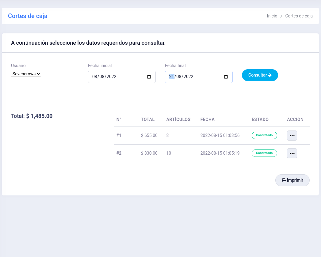 Cortes de caja
