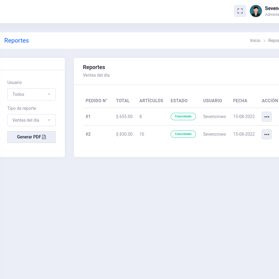 Panel administrativo